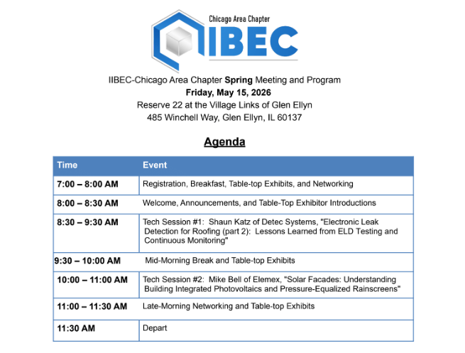 Registration for the 2026 IIBEC Chicago Area Chapter Spring Educational Program is now open. The program will take place on Friday, May 15th from 7:00am to 11:30am at Reserve 22 at the Village Links of Glen Ellyn, located at 485 Winchell Way in Glen Ellyn, Illinois. Attendee registration can be found HERE!